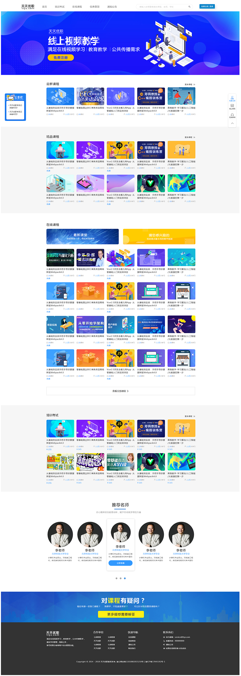 Project Description 满足在线视频学习,教育教学,公共传播需求, 建设学员管理,视频上传, 账号权限分级等商户后台管理功能 Official website address 铜陵http://tiantianyouzhi.com/ I want to share