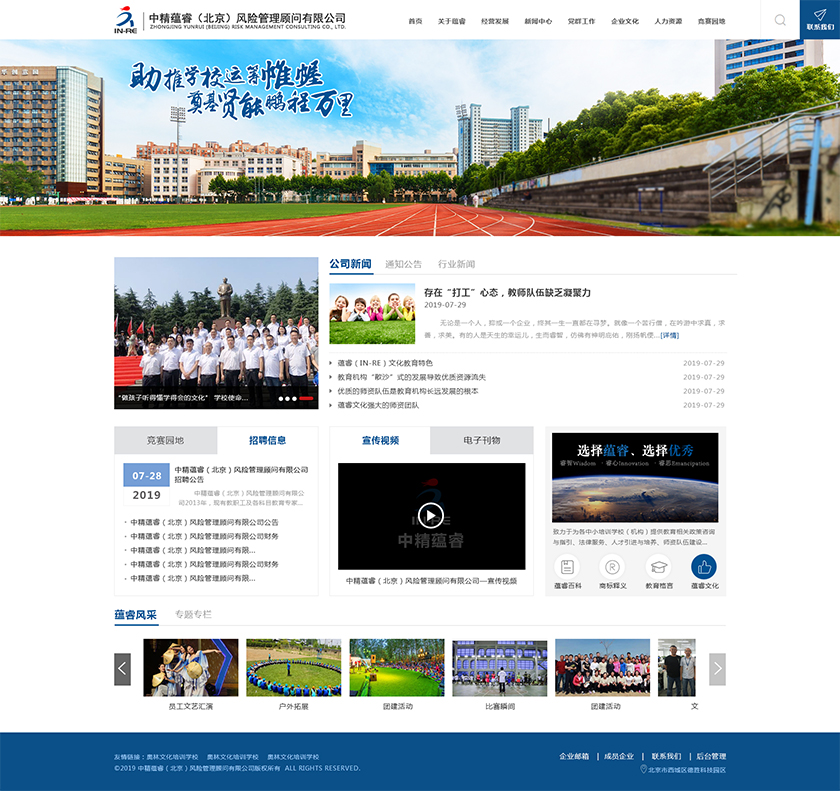 Project Description 中精蕴睿(北京)风险管理顾问有限公司2013年,现有教职工及各科目教育专家80多人,致力于为各中小培训学校(机构) 提供教育相关政策咨询与指引、法律服务、人才引进与培养、师资队伍建设与培训、教学教研与学科创新、市场营销企划、文化 理念塑造与品牌输出的专业化教育管理全方位的综合服务。 Official website address 铜陵http://in-re.com/ I want to share